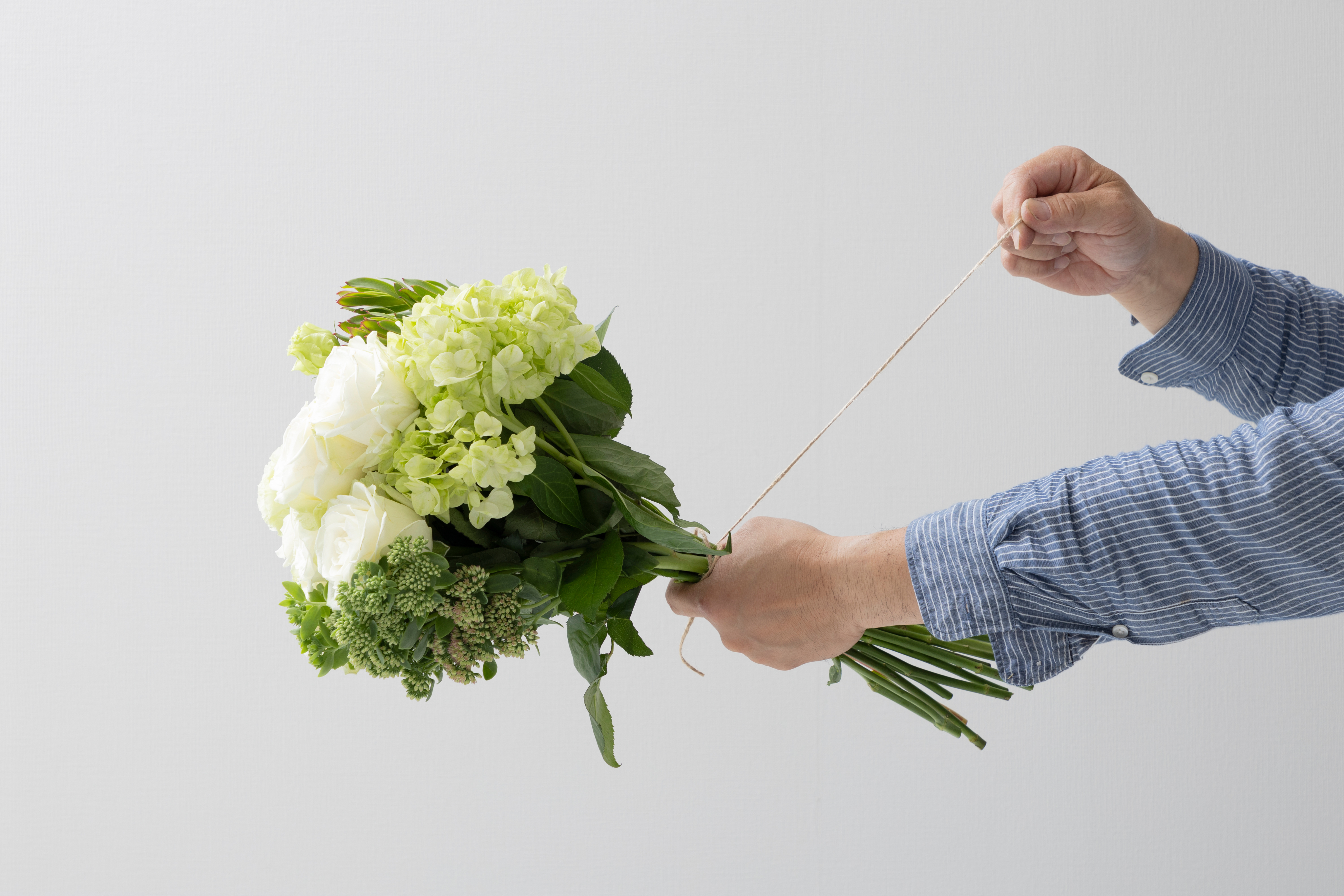 お届け日に合わせて、お花を仕入れいたします。お申し込み時にご指定いただいた内容をもとに花束をデザインいたします。新鮮なままお届けするので、お花を長く楽しんでいただけます。